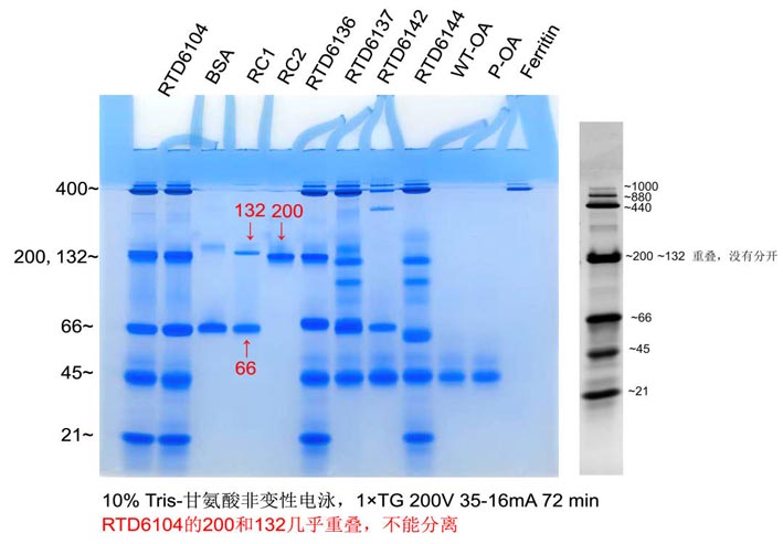 2. 非变性蛋白电泳Marker由于要保持蛋白的天然结构,都没有偶联染料,在电泳时基本都看不到条带;但是RTD6104中的440