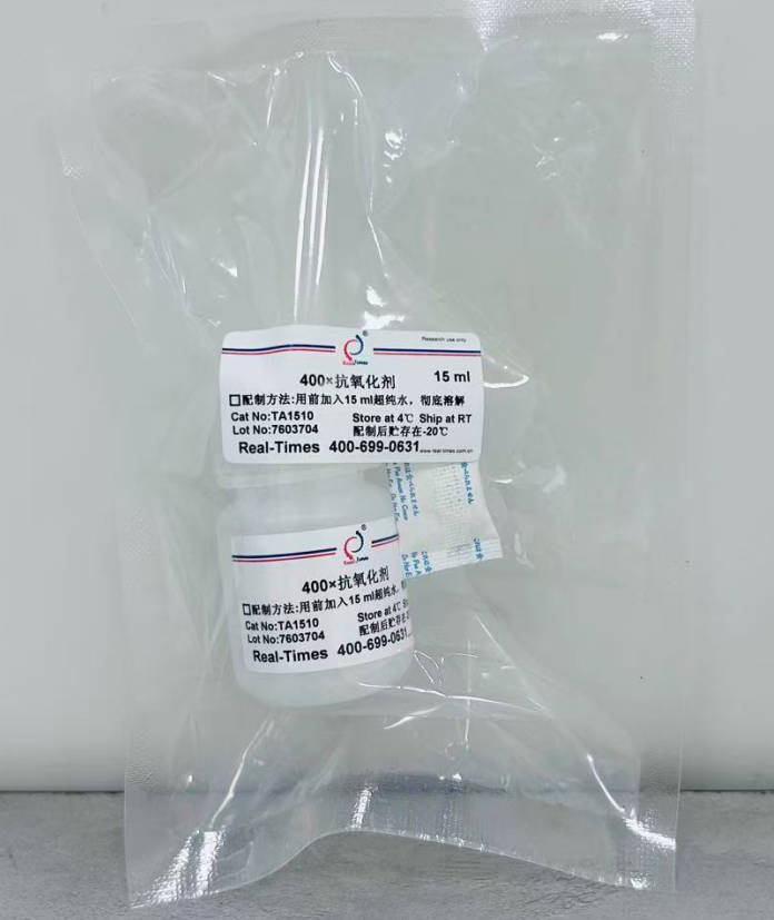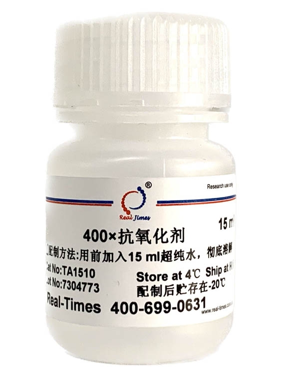 400×抗氧化剂为干粉,用前加入15 ml超纯水震荡彻底溶解后使用,已经溶解的400×抗氧化剂-20℃贮存。